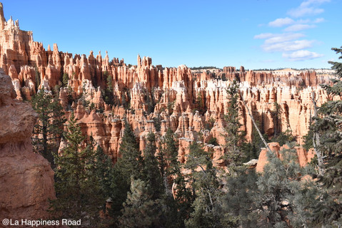 A chaque virage, à chaque détour, voire à chaque pas, on a envie de s'arrêter pour admirer et prendre des photos (désolée, c'est difficile de choisir). Les monticules de roches marron et ocre tranchent avec le vert des grands sapins et le bleu du ciel.