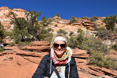 Nouvelle étape et nouveau parc national : Zion. Encore un nom dont on entend parler à travers le monde. On y arrive par l'est et la route y est d'autant plus belle dans ce sens. Arrivés sur le site en fin de matinée, cela nous laisse de temps de faire une petite rando. On va y aller plus tranquillement que la veille...