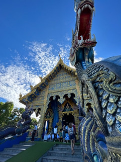 Quant au « temple bleu », il est pour le coup, très coloré ! Son bleu contraste avec les maisons noires et le temple blanc que nous avons pu voir dans cette même ville. Très joli, il abrite un Bouddha blanc immaculé ! De très belles photos à la clé !