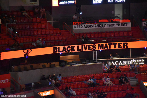 On a de la chance de pouvoir assister à ce genre de rencontre, à des prix très abordables. Cependant, les gradins ne seront remplis qu'à 33% de leur capacité, covid oblige... Mais ce n'est pas grave, pour nous c'est une première d'assister à un match de basket. Avant de nous installer à nos places, celles en haut car bien moins chères que celles proche du terrain, nous passons par la boutique de l'équipe pour acheter de grandes mains en mousse pour encourager les Heats comme de vrais fans. Un hot dog, une tranche de pizza et une bière dans le ventre, nous voilà fin prêts à donner de la voix depuis les tribunes.