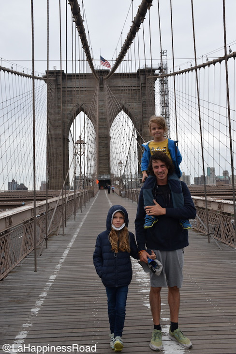 Dans un autre registre, il y a également une oeuvre architecturale qui mérite le détour : le Brooklyn Bridge. C'est l'un des plus anciens ponts suspendus des États-Unis. Sa caractéristique : la circulation se fait sur 2 niveaux : l'un pour les véhicules et l'autre pour les piétons et cyclistes. Avec son système de câbles, on le retrouve dans de nombreux films, et il est devenu un lieu de promenade très prisé. Nous ne le traverserons pas entièrement, mais l'emprunter sur quelques centaines de mètres reste un très bon moment pour toute la famille.